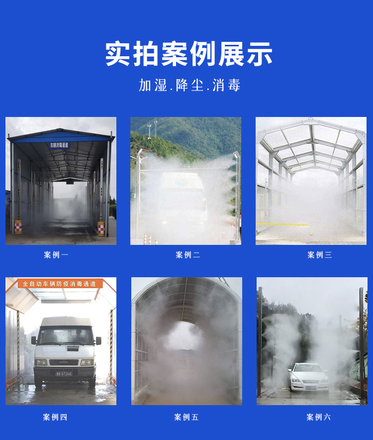 車輛消毒通道是一種通過地面嵌入式電子頻感傳感系統(tǒng)對通過通道的車輛進(jìn)行感應(yīng)識別,并智能化啟動動力系統(tǒng)對進(jìn)入通道內(nèi)的車輛進(jìn)行消毒的系統(tǒng)設(shè)備。車輛消毒通道設(shè)備可智能工作,實現(xiàn)無人值守工作。整個系統(tǒng)可以自動按比例加藥,自動控水加水;車輛進(jìn)入時自動識別及設(shè)備自動啟動,消毒完畢后自動關(guān)閉,車輛出去時可智能識別并禁止設(shè)備工作,實現(xiàn)單向消毒;當(dāng)室外溫度低于安全溫度時自動啟動加熱防凍系統(tǒng),對噴霧系統(tǒng)進(jìn)行恒溫加熱控溫保護(hù)。設(shè)備消毒模式:設(shè)備啟動后動力主機工作并通過高壓噴霧系統(tǒng)在通道房內(nèi)形成立體霧墻,車輛在霧墻內(nèi)運行過程中對整車實現(xiàn)動態(tài)的,徹底的消毒。