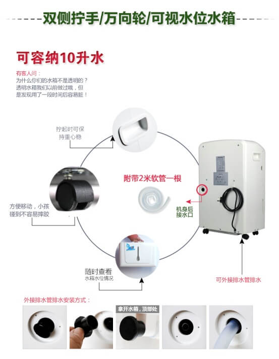 排水方式:水箱式排水,可外接水管式排水