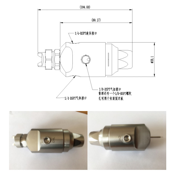 高精細(xì)切割加工,內(nèi)置氣缸控制,外接氣源和水源。由噴槍主體、噴嘴、噴嘴帽、清除針、鎖帽及其它內(nèi)部件組成。內(nèi)部結(jié)構(gòu)緊密度要求高,噴嘴需去毛刺,清除針要經(jīng)久耐用。通過調(diào)節(jié)氣液流量比,可噴出3至100微米不同粒徑的霧滴,每分鐘可運(yùn)行200次循環(huán),噴嘴不滴水。不同的粒徑選擇可達(dá)到“加濕、降溫、除塵”功能。