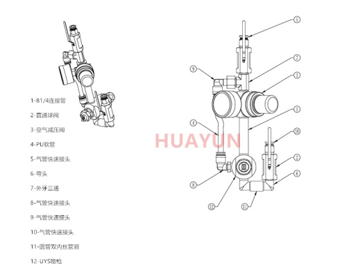 通過特質(zhì)快速接頭(5、10)用納米硬管與主管道連接固定。