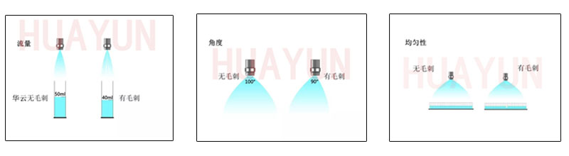 此款產(chǎn)品在氣壓1公斤的情況下即可發(fā)揮良好的霧化效果,擴(kuò)散距離長(zhǎng)達(dá)5米,噴霧量可通過(guò)更換噴嘴決定,高精細(xì)切割加工,內(nèi)置氣缸控制,外接氣源和水源,內(nèi)部結(jié)構(gòu)緊密度要求高,噴嘴需去毛刺,清除針要經(jīng)久耐用。噴嘴不滴水。對(duì)于水質(zhì)不是很好的應(yīng)用環(huán)境提供了很好的解決方案。