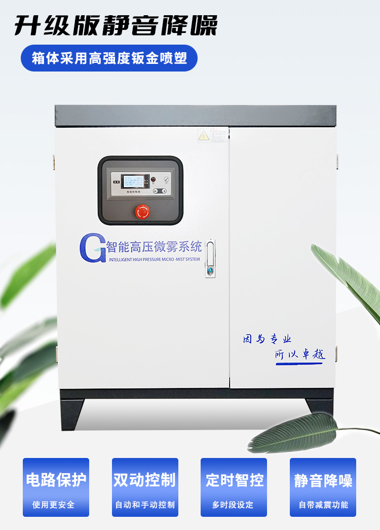 4、耗水量小、無二次污染;設(shè)備投入小,運行、維護費用低,使用高壓噴霧不僅為車間節(jié)流,同時綠色環(huán)保,保護環(huán)境也是現(xiàn)代企業(yè)不能推托的責(zé)任。